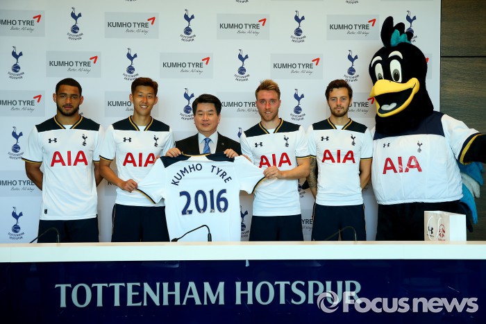 (서울=포커스뉴스) 금호타이어가 19일(현지 시각) 영국의 명문 축구구단 토트넘 핫스퍼를 2016/2017 시즌부터 공식 후원하기 위한 계약을 맺고, 맨체스터 유나이티드 후원 이후 5년만에 프리미어리그 축구 마케팅을 재개했다.