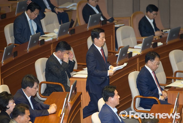(서울=포커스뉴스) 20일 오전 서울 여의도 국회에서 열린 344회 국회(임시회) 2차 본회의, 사드(THAAD·고고도미사일방어체계) 배치에 대한 긴급현안질문에 참석한 한민구 국방부 장관이 의원들의 질문에 답하기 위해 이동하고 있다.