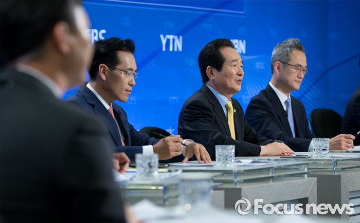 (서울=포커스뉴스) 정세균(오른쪽 두번째) 국회의장이 20일 오전 서울 종로구 세종문화회관에서 열린 한국방송기자클럽 초청 토론회에 참석해 모두발언을 하고 있다.