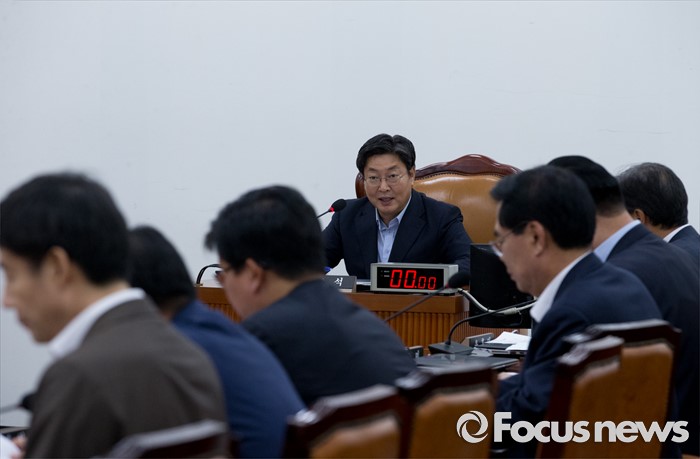 (서울=포커스뉴스) 20일 오후 서울 여의도 국회에서 열린 남북관계개선 특별위원회 전체회의에 참석한 이춘석 위원장이 발언하고 있다.