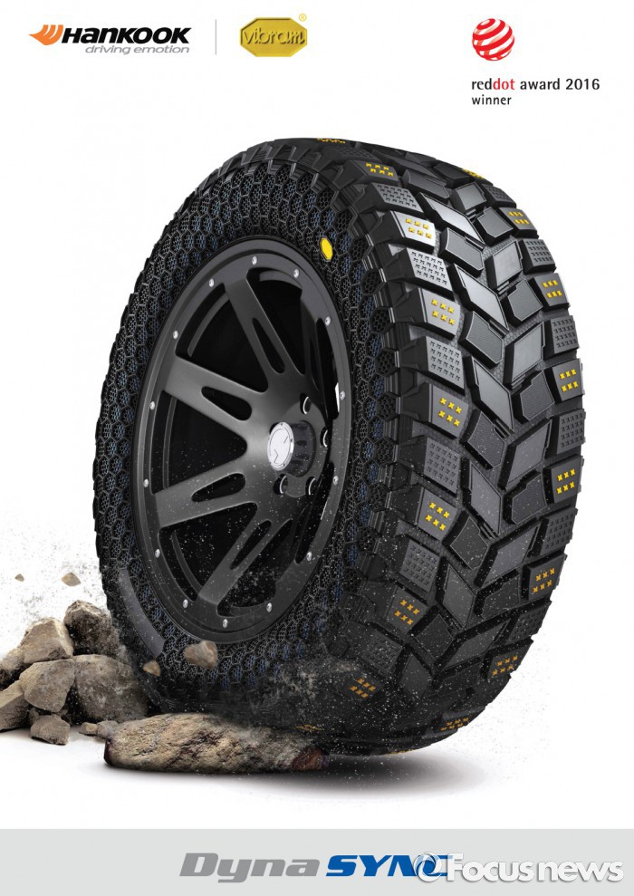 (서울=포커스뉴스) 한국타이어는 이탈리아 아웃솔 전문 브랜드 비브람(Vibram)과 콜라보레이션을 통해 개발한 오프로드용 콘셉트 타이어 '다이나 싱크(Dyna SYNC)'가 레드닷 디자인 어워드 2016 디자인 콘셉트 부문에서 본상을 수상했다고 20일 밝혔다.
