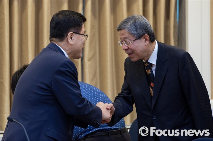 △ 악수하는 김희옥 위원장-김광림 정책위의장