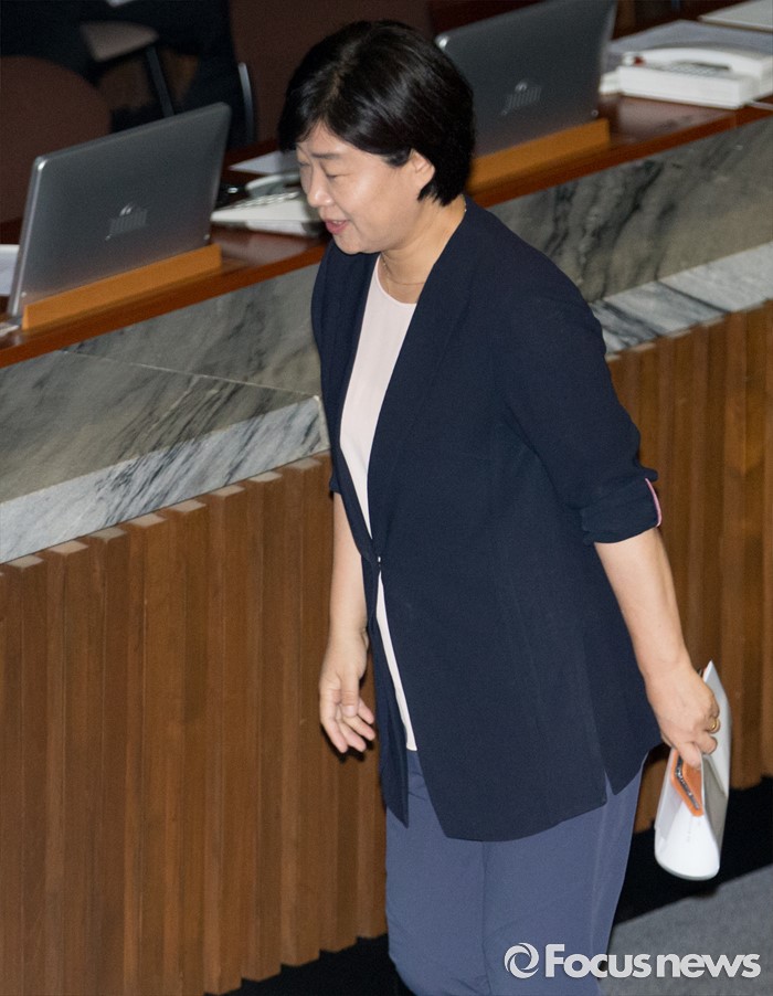 (서울=포커스뉴스) 20일 오후 서울 여의도 국회에서 344회 국회(임시회) 2차 본회의, 사드(THAAD·고고도미사일방어체계) 배치에 대한 긴급현안질문이 산회된 후 서영교 무소속 의원이 퇴장하고 있다. 서 의원은 가족채용논란 등으로 더불어민주당을 탈당했다.
