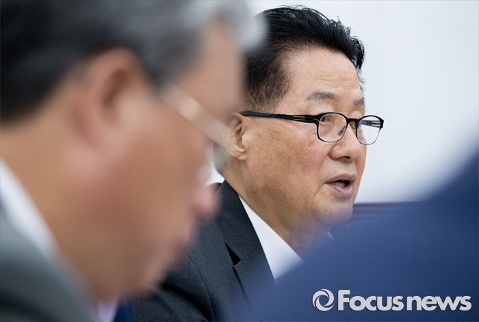(서울=포커스뉴스) 21일 오전 서울 여의도 국회에서 열린 국민의당 원내정책회의에 참석한 박지원 비대위원장이 모두발언을 하고 있다.