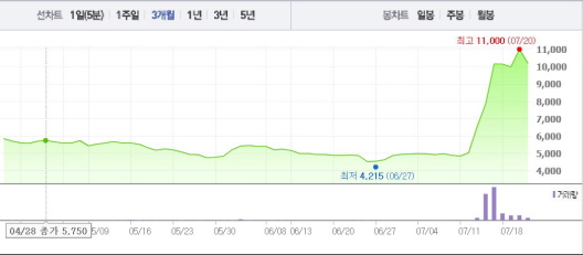 포켓몬 GO는 미국, 캐나다, 호주 등에 시범 출시된 상태며 현재 앱 매출 순위에서 최상위권에 올라갔다. 한국에서도 포켓몬 GO 열풍이 불고 있다. 한빛소프트는 쿠킹 오디션 VR, 헬게이트 VR 등 총 5가지의 VR 콘텐츠를 개발하고 있어 주목을 받았다.주가흐름<사진출처=네이버 캡쳐>