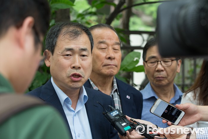 (서울=포커스뉴스) 최봉태(왼쪽) 변호사가 21일 오전 서울 양천구 서울남부지방법원에서 열린 국가를 상대로 한 손해배상 청구 소송 선거공판이 끝난 뒤 취재진 질문에 답하고 있다. 서울남부지법 민사합의15부(부장판사 이광영)는 한국원폭피해자협회 서울지부 회원 230명이 국가를 상대로 낸 손해배상 청구 소송에서 원고 패소로 판결했다.