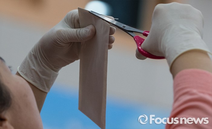 (서울=포커스뉴스) 20일 오전 서울 종로구 선거연수원에서 개표사무원들이 1987년 제13대 대통령선거 구로구을 우편투표함에서 꺼낸 투표용지를 개봉하고 있다.