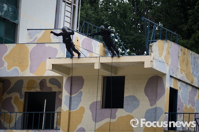 (서울=포커스뉴스) 21일 오전 서울 서초구 경찰특공대에서 경찰 특공대원들이 대테러 훈련을 하고 있다.