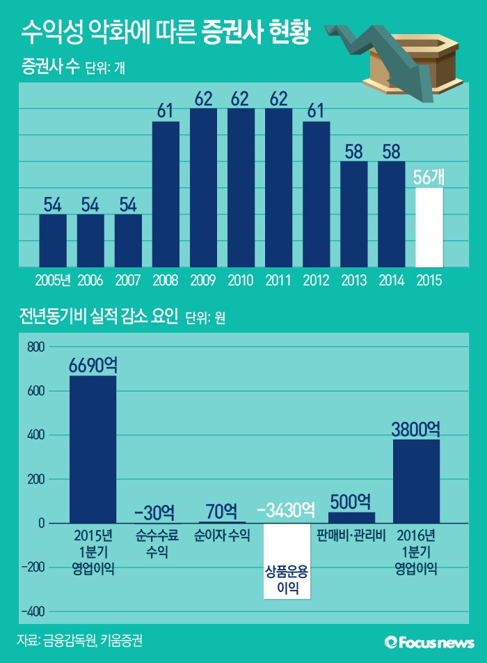 | △ [그래픽] 수익성 악화에 따른 증권사 현황 |