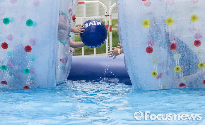 (서울=포커스뉴스) 21일 오후 서울 광진구 뚝섬 한강공원 수영장을 찾은 시민들이 물놀이를 즐기고 있다.
