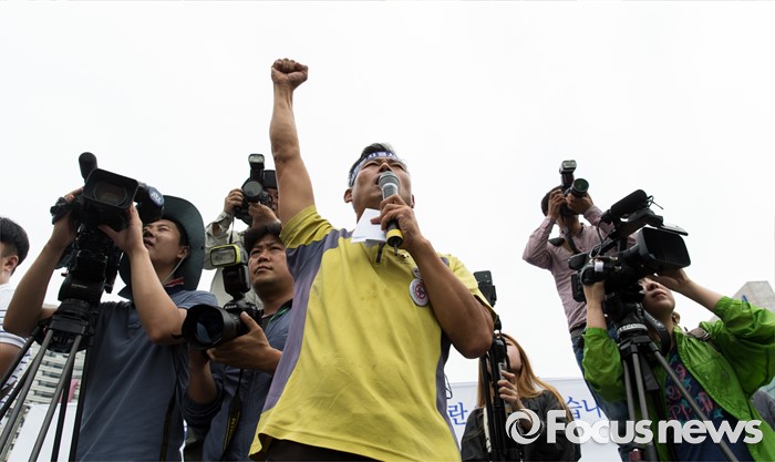 (서울=포커스뉴스) 21일 오후 서울역 광장에서 사드 배치 반대를 요구하는 경북 성주군민 2천여 명이 대규모 상경집회를 하고 있다.