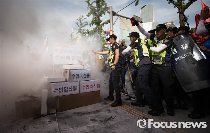 | △ 수입농축산문 화형식 진화하는 경찰병력 |