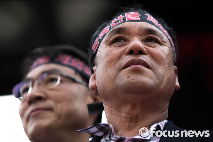 (서울=포커스뉴스) 21일 오후 서울 여의도 산업은행 본점 앞에서 농축산물의 김영란법 적용 제외를 요구하는 전국 농축산인 총궐기대회가 열리고 있다.
