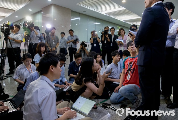 정병국에 쏠린 취재진