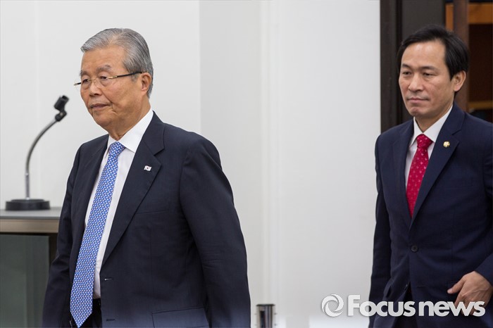 (서울=포커스뉴스) 김종인(왼쪽) 더불어민주당 비상대책위 대표와 우상호 원내대표가 22일 오전 서울 여의도 국회에서 열린 비상대책위원회의에 참석하기 위해 회의실로 들어서고 있다.