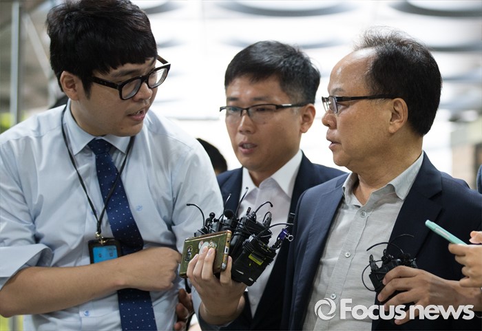 (서울=포커스뉴스) 롯데케미칼의 270억원대 조세포탈 혐의를 받고 있는 기준(오른쪽) 전 롯데물산 사장이 영장실질심사를 받기 위해 10일 오전 서울중앙지법으로 들어서며 취재진 질문에 답하고 있다.