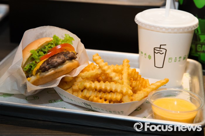 (서울=포커스뉴스) 22일 오전 서울 강남구 쉐이크쉑 국내 1호점 매장에서 선보인 쉐이크쉑 버거. 기본 버거인 쉑버거 단품이 6900원, 슈룸버거 단품 9400원, 감자튀김 3900원, 쉐이크 음료가 5900원이다.