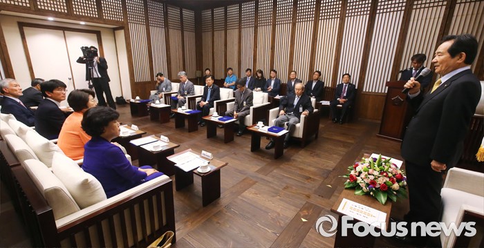 (서울=포커스뉴스) 22일 오전 서울 여의도 국회 의장접견실에서 열린 국회 공직자윤리위원회 위촉식에 참석한 정세균 국회의장이 인사말을 하고 있다.
