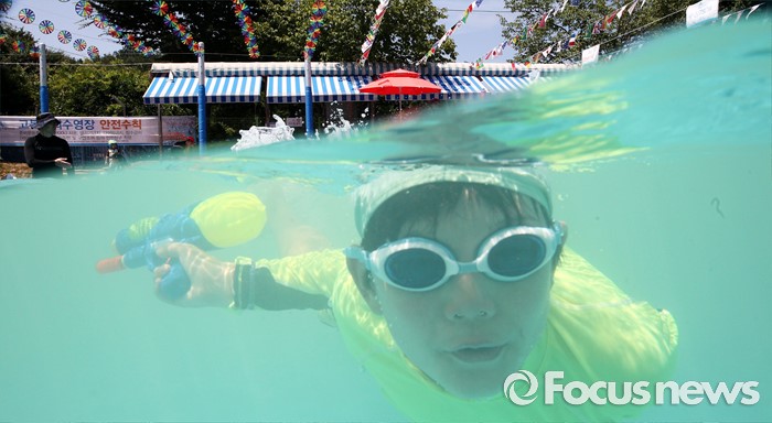 (세종=포커스뉴스) 무더위가 가장 심하다는 절기상 대서인 22일 오후 세종시 연서면 고복수영장에서 어린이들이 물놀이를 하며 더위를 식히고 있다.
