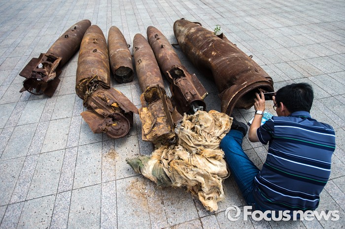 (서울=포커스뉴스) 22일 오후 서울 중구 서울광장에서 '전쟁 없는 세상을 위한 에이이브이(Art's Eye View) 프로젝트 전시가 열리고 있다. 미공군의 사격장으로 쓰였던 경기도 매향리에서 반출된 포탄 및 탄피를 활용, 1000여점의 예술작품으로 만든 이번 전시는 오는 24일까지 열릴 예정이다.