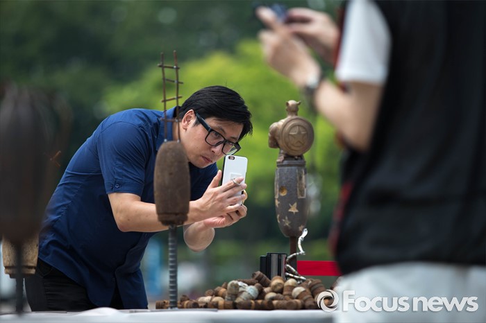 | △ 포탄으로 만든 예술품이 신기한 시민들 |
