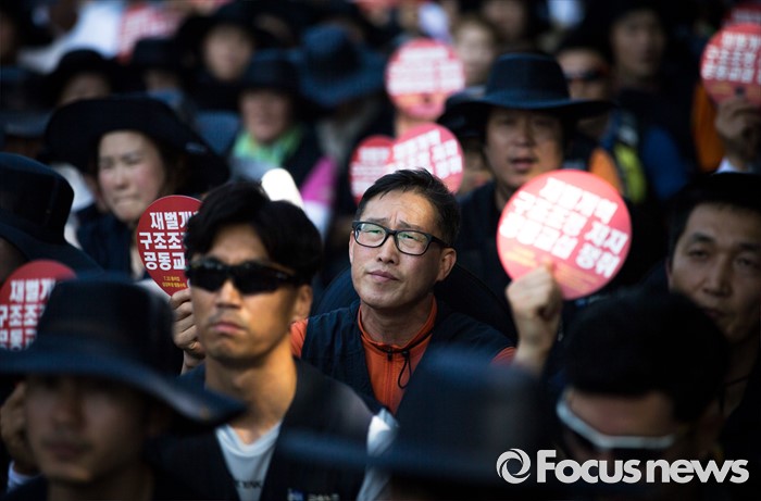 (서울=포커스뉴스) 정부의 일방적인 조선업 구조조정 중단과 현대차 그룹의 성실한 그룹사 공동교섭 참여, 정부의 노동개악 철회등을 내걸며 파업에 들어간 전국금속노조가 22일 오후 서울 서초구 현대자동차 본사 앞에서 금속노조 총파업 대회를 열고 있다.
