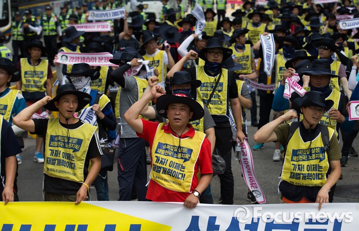 (서울=포커스뉴스) 전국금속노동조합(금속노조)가 '재벌개혁'을 요구하며 총파업 투쟁대회를 개최했다.