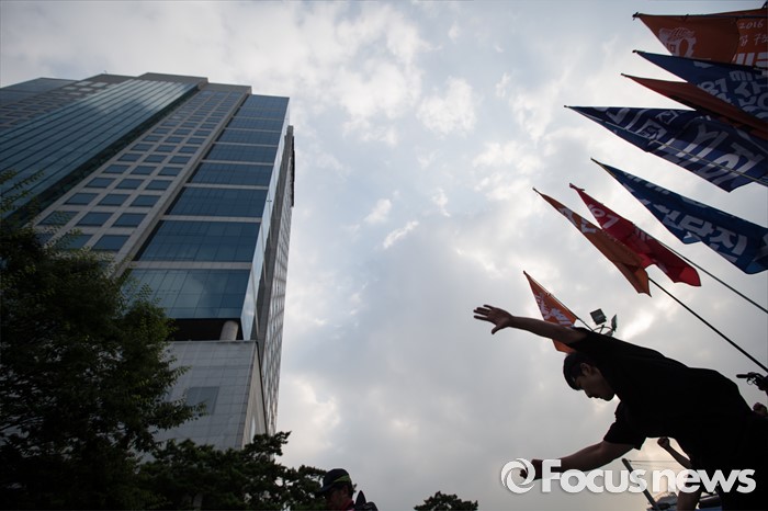 (서울=포커스뉴스) 정부의 일방적인 조선업 구조조정 중단과 현대차 그룹의 성실한 그룹사 공동교섭 참여, 정부의 노동개악 철회등을 내걸며 파업에 들어간 전국금속노조가 22일 오후 서울 서초구 현대자동차 본사 앞에서 금속노조 총파업 대회를 열고 있다.