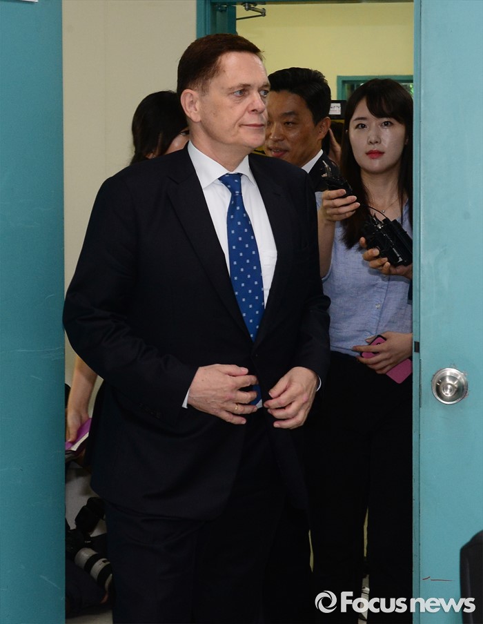 (인천=포커스뉴스) 요하네스 타머 아우디폭스바겐 사장이 25일 오전 인천 서구 국립환경과학원에서 열린 차량 인증 조작 관련 환경부 청문회에 참석하고 있다.