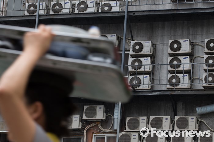 (서울=포커스뉴스) 연이은 무더위로 전력 수요가 높아지는 25일 오후 서울 중구의 한 건물 외벽에 에어컨 실외기가 돌아가고 있다. 전력거래소는 정오를 기준으로 최고전력 수요가 7905만㎾를 기록해 여름철 기준 역대 최고치를 경신했다고 전했다.