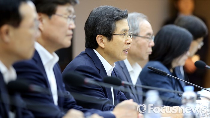(세종=포커스뉴스) 황교안(왼쪽 세 번째) 국무총리가 25일 오후 세종시 정부세종청사 국무총리실에서 열린 원자력진흥위원회에 참석해 회의를 주재하고 있다.