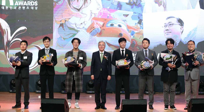 수상자는 민간위원을 포함해 구성되는 전문가 심사위원회와 문체부 공적심사위원회의 심사, 행정자치부의 자격기준 최종 확인 등을 거쳐 11월에 최종 결정되며 시상식은 오는 12월6일 서울 코엑스에서 열릴 예정이다.지난해 12월8일 서울 삼성동 코엑스 콘퍼런스룸에서 '2015 대한민국 콘텐츠 대상' 시상식이 열렸다. 왼쪽부터 출동! 슈퍼윙스의 퍼니플럭스 엔터테인먼트 정길훈 대표, 로보카폴리의 로이비쥬얼 이동우 대표, 갓 오브 하이스쿨의 박용제 작가, 김종덕 문화체육관광부 장관, 덱스터 김용화 대표, JJS미디어 이재석 대표, 미생의 김원석 tvN 프로듀서, 슈퍼차이나의 황응구 KBS 프로듀서.