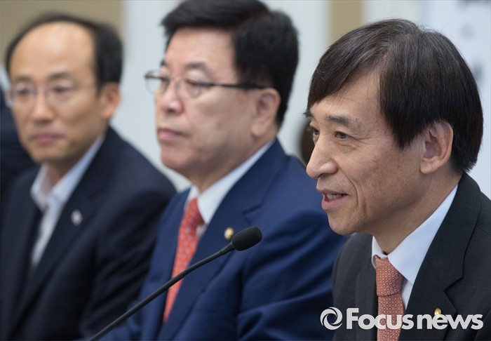 (서울=포커스뉴스) 27일 오전 서울 여의도 국회 귀빈식당에서 열린 경재재정연구포럼 조찬 간담회에 참석한 이주열 한국은행 총재가 발언하고 있다.