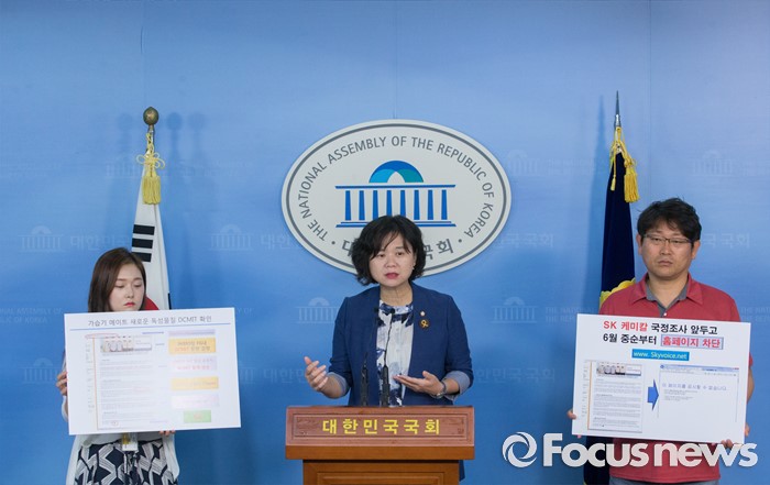(서울=포커스뉴스) 27일 오전 서울 여의도 국회 정론관에서 가습기살균제 국조특위 위원인 이정미 정의당 원내수석부대표가 애경 가습기메이트와 이마트 가습기살균제 원료물질에서 새로운 독성물질(DCMIT)이 함유된 것과 관련 기자회견을 하고 있다.
