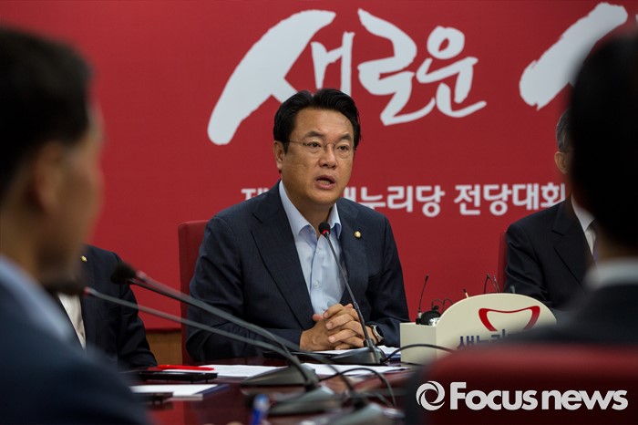 (서울=포커스뉴스) 정진석 새누리당 원내대표가 27일 오전 서울 여의도 새누리당사에서 열린 혁신비상대책위원회의에 참석해 모두발언 하고 있다.