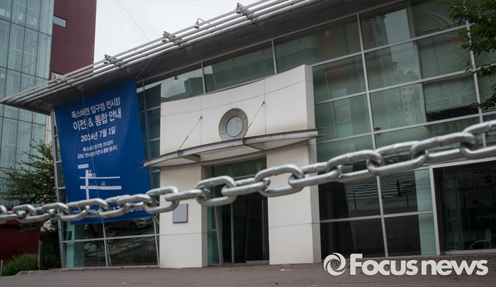 (서울=포커스뉴스) 환경부가 내달 초 폭스바겐 차량에 대한 인증취소와 판매금지 등 행정처분을 확정할 계획을 밝힌 가운데, 11년 간 영업을 이어온 폭스바겐 압구정 전시장이 강남 전시장과 이전ㆍ통합을 알리며 간판을 내렸다. 27일 오전 영업을 종료한 폭스바겐 압구정 전시장에 이전을 알리는 현수막이 걸려 있다.