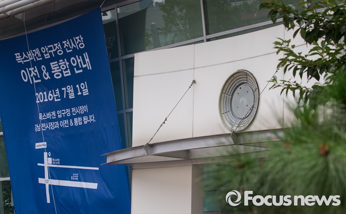(서울=포커스뉴스) 환경부가 내달 초 폭스바겐 차량에 대한 인증취소와 판매금지 등 행정처분을 확정할 계획을 밝힌 가운데, 11년 간 영업을 이어온 폭스바겐 압구정 전시장이 강남 전시장과 이전ㆍ통합을 알리며 간판을 내렸다. 27일 오전 영업을 종료한 폭스바겐 압구정 전시장에 이전을 알리는 현수막이 걸려 있다.