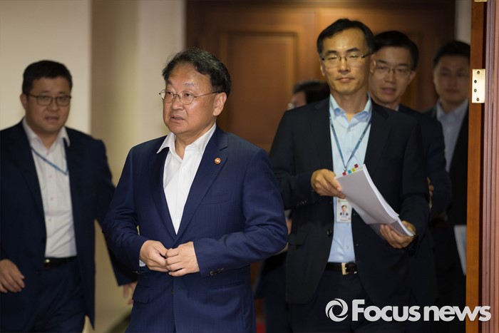 | △ 경제관계장관회의 참석하는 유일호 |