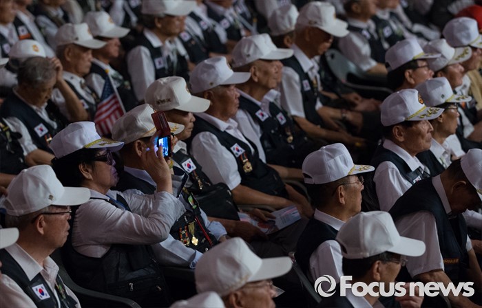 (서울=포커스뉴스) 27일 오전 서울 송파구 올림픽공원 올림픽홀에서 열린 정전협정 63주년 및 유엔군 참전의 날 기념식에서 6·25 전쟁 참전용사들이 자리에 참석해있다.