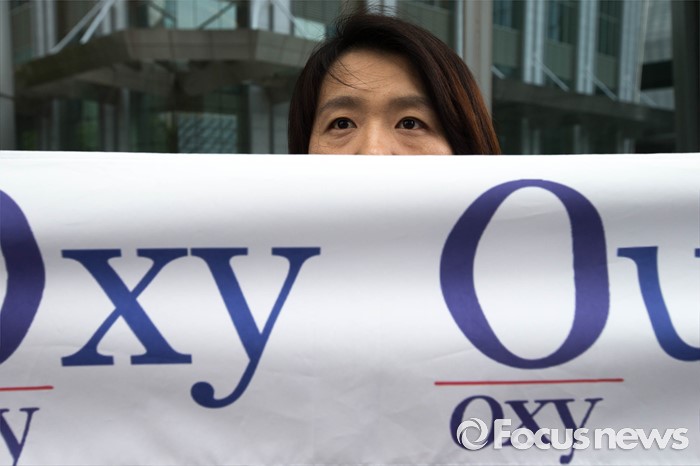 (서울=포커스뉴스) 27일 오전 서울 영등포구에 위치한 옥시레킷벤키저 본사 앞에서 가습기살균제참사전국네트워크 회원들이 '제2의 옥시를 막자-가습기살균제사고 기업 현장조사' 기자회견을 하고 있다.