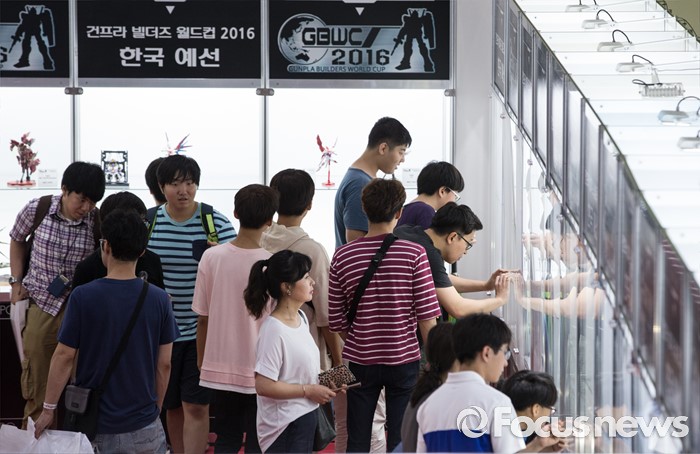 (서울=포커스뉴스) 27일 오전 서울 강남구 코엑스에서 열린 '건프라 엑스포 2016'을 찾은 방문객들이 전시작품을 살펴보고 있다.