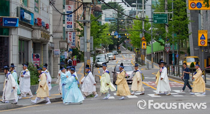 (서울=포커스뉴스) 27일 오전 서울 종로구 청운효자동 주민자치센터 앞에서 열린 '사드 배치 반대 기자회견'을 마친 성주 유림단체 회원들이 버스로 향하고 있다.