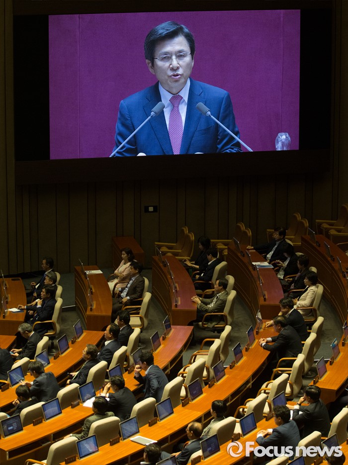 (서울=포커스뉴스) 27일 오후 서울 여의도 국회에서 열린 344회 국회(임시회) 3차 본회의에 참석한 황교안 국무총리가 2016년도 제1회 추가경정예산안에 대한 정부의 시정연설을 하고 있다.