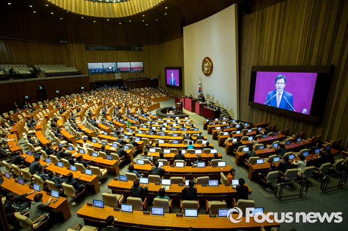 (서울=포커스뉴스) 황교안 국무총리가 27일 오후 서울 여의도 국회에서 열린 344회 국회(임시회) 3차 본회의에 참석해 추가경정예산안과 관련한 시정연설 하고 있다.