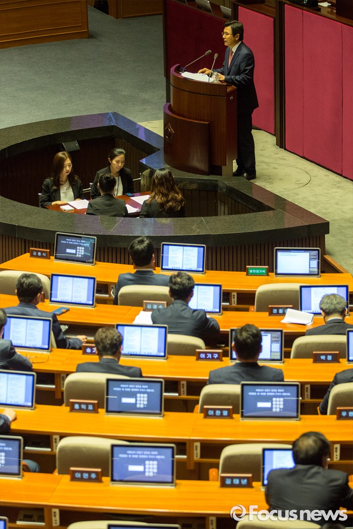 (서울=포커스뉴스) 황교안 국무총리가 27일 오후 서울 여의도 국회에서 열린 344회 국회(임시회) 3차 본회의에 참석해 추가경정예산안과 관련한 시정연설 하고 있다.