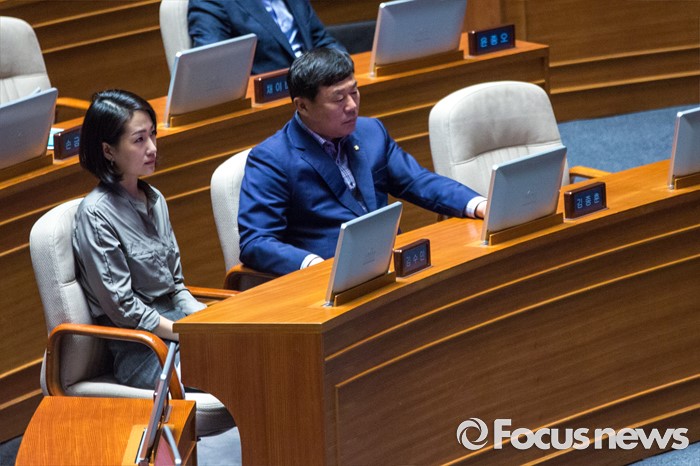 (서울=포커스뉴스) 김수민(왼쪽) 국민의당 의원이 27일 오후 서울 여의도 국회에서 열린 344회 국회(임시회) 3차 본회의에 참석하고 있다.