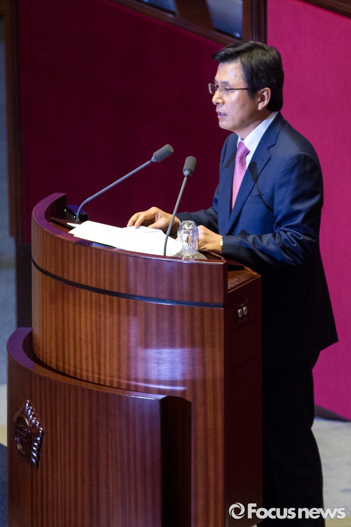 (서울=포커스뉴스) 황교안 국무총리가 27일 오후 서울 여의도 국회에서 열린 344회 국회(임시회) 3차 본회의에 참석해 추가경정예산안과 관련한 시정연설 하고 있다.