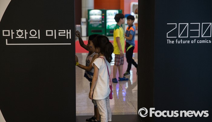 (부천=포커스뉴스) 27일 오후 경기도 부천시 한국만화박물관에서 열린 '제19회 부천국제만화축제'에 참여한 어린이들이 전시물을 관람하고 있다.