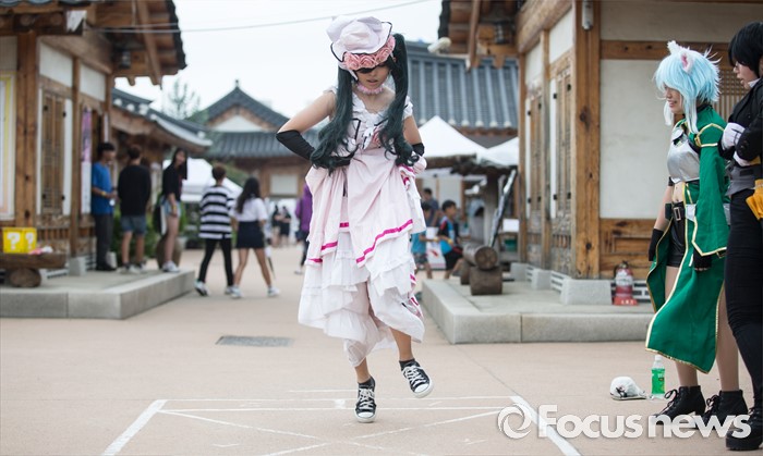 (부천=포커스뉴스) 27일 오후 경기도 부천시 한국만화박물관에서 열린 '제19회 부천국제만화축제'에 참여한 코스어들이 놀이를 하고 있다.