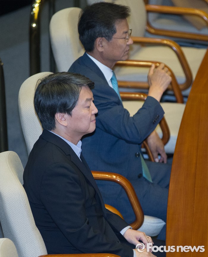 (서울=포커스뉴스) 27일 오후 서울 여의도 국회에서 열린 344회 국회(임시회) 3차 본회의에 안철수(왼쪽), 천정배 국민의당 전 대표가 자리하고 있다.